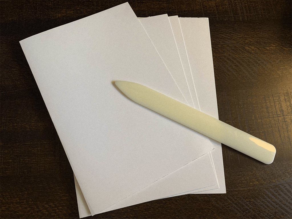 I pulled all the pages out of the sketchbooks and started folding them with this bone folder tool, shown above. Knowing that I wanted to use this book for the rest of my life, and potentially pass it down to my son, so I ended up folding all the pages of both the sketchbook. I knew I’d be disappointed if I felt like there wasn’t enough pages.