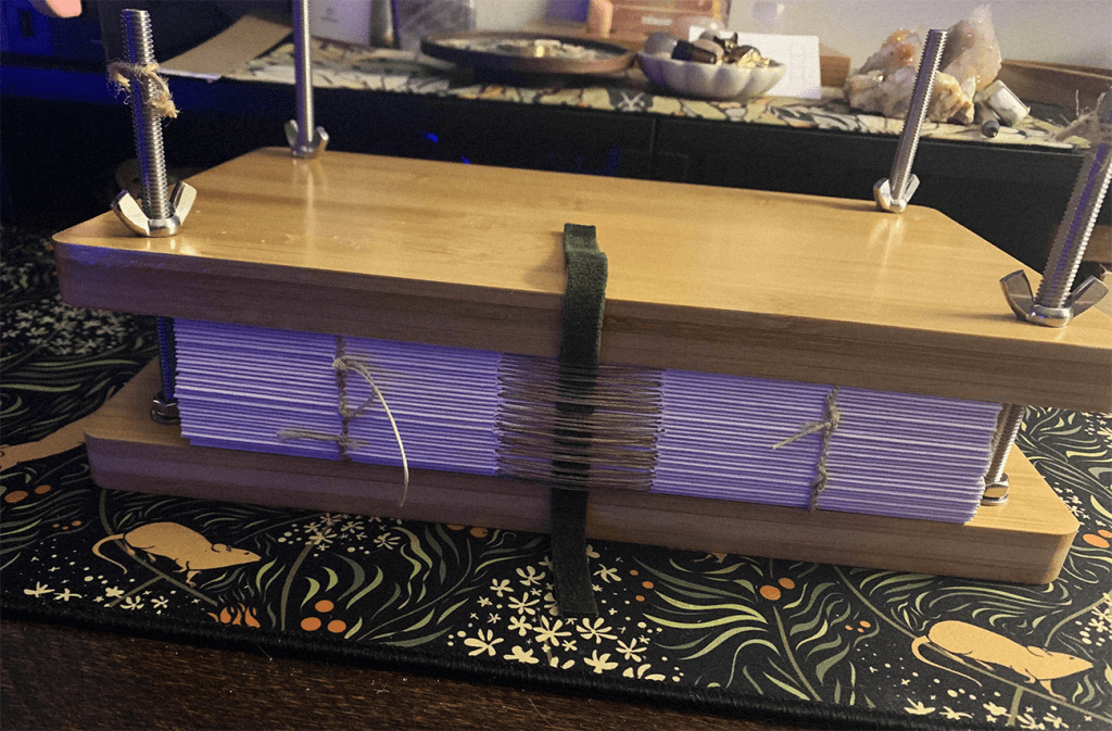 I also used quite a few resources. Please watch their videos instead of using this blog post as a tutorial if you would like to bind your own book. They’re actual professionals who do things so beautifully. I made tons of mistakes along the way. I found the YouTube channels DAS Bookbinding and Four Keys Book Arts very helpful. I also found a some DIY YouTube Channels inspiring like Jess Less and Nerdforge.
